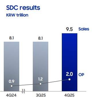 Bên cạnh đó, mảng màn hình (SDC) cũng đạt lợi nhuận 2 ngàn tỷ won, gấp đôi cùng kỳ, đến từ nhu cầu smartphone tăng cao và nguồn cung ổn định.