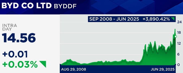 Tuy nhiên, một độc giả chuyên mục Buffett Watch phát hiện báo cáo tài chính quý 1/2025 của Berkshire Hathaway Energy – công ty con trực tiếp nắm giữ cổ phần BYD – đã ghi nhận giá trị khoản đầu tư bằng 0 tính đến ngày 31/03. Người phát ngôn Berkshire sau đó xác nhận toàn bộ cổ phần BYD đã được bán hết.