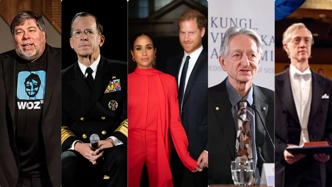 Steve Wozniak (đồng sáng lập Apple), Đô đốc Mike Mullen (cựu Chủ tịch Hội đồng Tham mưu trưởng Liên quân Mỹ), Hoàng tử Harry và Meghan Markle (thành viên hoàng gia Anh),  Geoffrey Hinton (giành giải Nobel, được mệnh danh là “cha đẻ AI”)