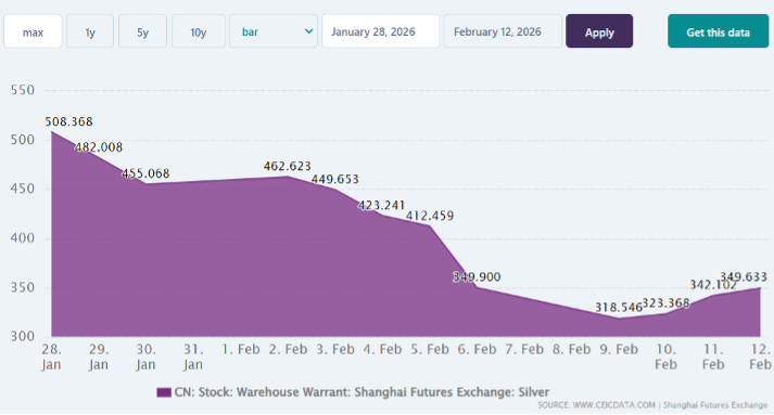 Ngày 06/02/2026, lượng tồn kho Registered đã chính thức thủng mốc tâm lý quan trọng 100 triệu ounce, và đến ngày 11/02 thì rơi xuống còn 96.4 triệu ounce. Đây là một tín hiệu cảnh báo rủi ro cao.
