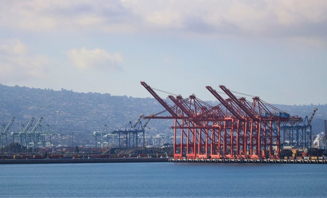 Quang cảnh cảng hàng hóa Long Beach, California, Mỹ. (Ảnh: THX/TTXVN)