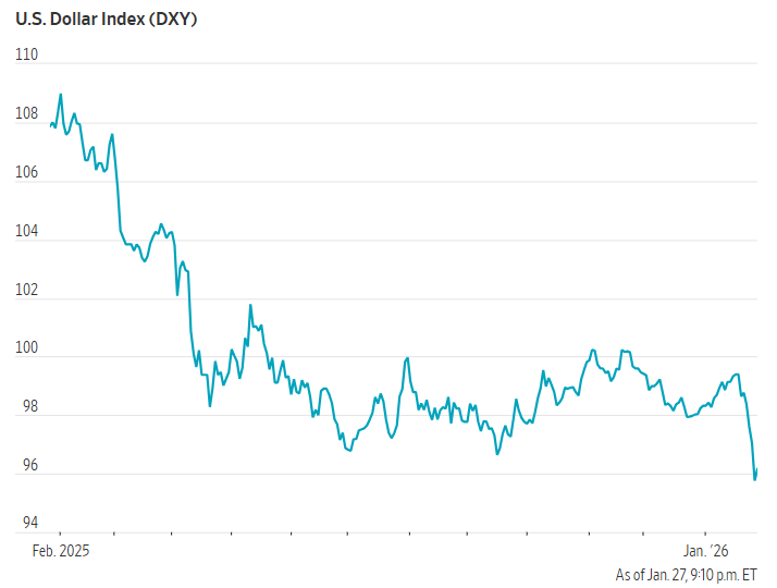 Áp lực lên đồng USD gia tăng do những lo ngại mới xoay quanh vai trò lãnh đạo kinh tế của Mỹ, sau nỗ lực gần đây của Tổng thống Donald Trump nhằm giành quyền kiểm soát Greenland – động thái khiến các đồng minh khó chịu và làm dấy lên lo ngại rằng nhà đầu tư nước ngoài có thể bán các tài sản của Mỹ, bao gồm trái phiếu Chính phủ Mỹ.