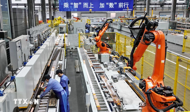 Công nhân làm việc tại nhà máy ở Cáp Nhĩ Tân, tỉnh Hắc Long Giang, Trung Quốc. (Ảnh: THX/TTXVN)
