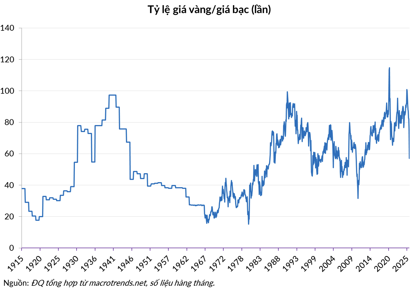 Hiện nay, tỷ lệ vàng/bạc đang ở khoảng 56, còn cách rất xa mức thấp trong lịch sử, chứng tỏ giá bạc còn dư địa để thu hẹp khoảng cách với giá vàng. Giả sử tỷ lệ này giữ nguyên, thì với triển vọng giá vàng được dự báo tiếp tục tăng lên 5,000 hay 6,000 USD/ounce vào năm 2026, giá bạc cũng có tiềm năng đi lên tương ứng.