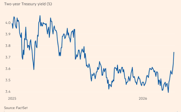 Lợi suất trái phiếu kho bạc Mỹ kỳ hạn 2 năm, vốn thường biến động theo kỳ vọng lãi suất, đã tăng 0.1 điểm phần trăm lên 3.76%.