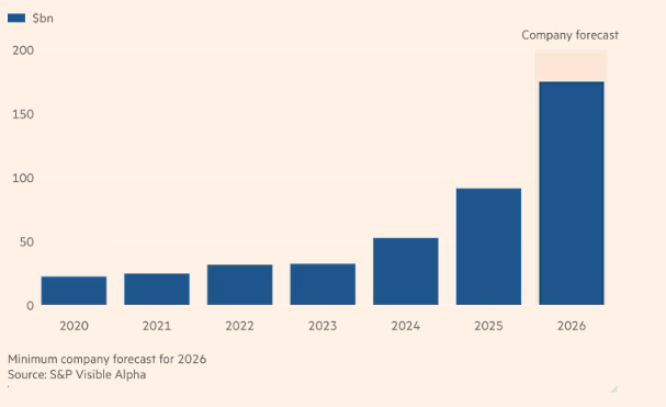Ông lớn công nghệ của Mỹ đã điều chỉnh tăng dự báo chi tiêu vốn năm 2026 lên khoảng 175-185 tỷ USD – một con số vượt xa kỳ vọng của các nhà phân tích ở mức 120 tỷ USD.