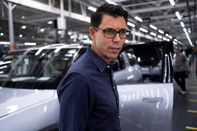 Giám đốc điều hành Rivian RJ Scaringe tham quan bên trong cơ sở sản xuất ô tô điện của Rivian tại Normal, Illinois, Mỹ ngày 21 tháng 6 năm 2024