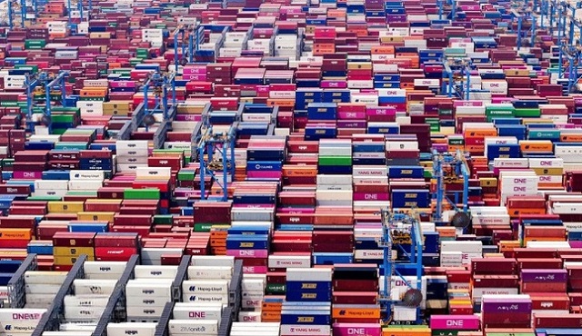Cảng hàng hóa ở Sơn Đông, Trung Quốc. (Ảnh: THX/TTXVN)