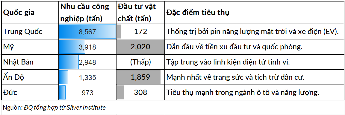 Top 5 quốc gia có nhu cầu bạc lớn nhất thế giới năm 2024
