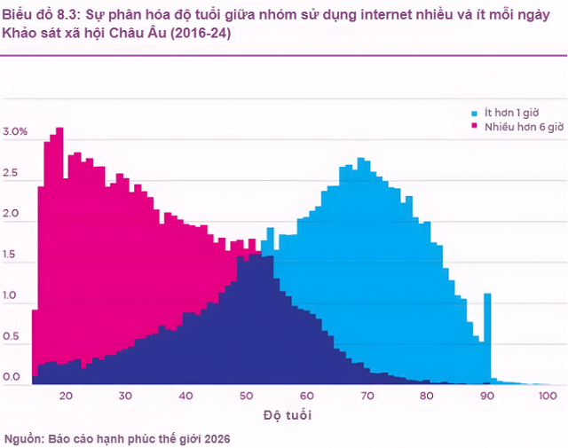 Theo phân tích dữ liệu trên 43 quốc gia của Báo cáo WHR 2026, hiện trạng sử dụng mạng xã hội có vấn đề (PSMU – Problematic Social Media Use) đang tàn phá phúc lợi của nhóm thanh thiếu niên yếu thế với cường độ nặng nề hơn.