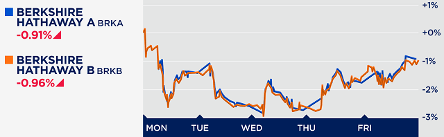 KBW đã hạ khuyến nghị cổ phiếu Berkshire xuống mức “bán” từ đầu năm nay, một phần do những lo ngại xung quanh việc Warren Buffett sắp rời ghế CEO. Tuy nhiên, cổ phiếu hạng A và B đã vượt qua cơn sóng gió khá ổn định trong tuần này với mức giảm gần 1%. Dù vậy, giá cổ phiếu vẫn thấp hơn 7% so với mức đỉnh lịch sử được thiết lập vào tháng 5 – trước khi Warren Buffett thông báo kế hoạch từ chức CEO vào cuối năm.