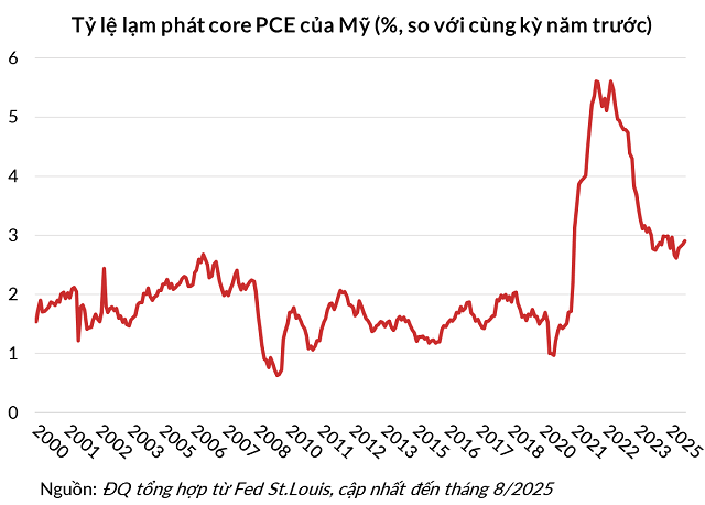 Thước đo lạm phát mà Fed ưa thích sử dụng là core PCE (loại trừ giá lương thực và năng lượng) đang ở mức 2.9%, cao hơn nhiều so với mục tiêu dài hạn là 2%.
