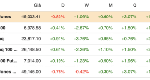 S&P 500 lập kỷ lục mới, còn Dow Jones ngược lối Chỉ số S&P 500 vươn lên mức kỷ lục mới trong ngày 27/01, nhờ đà tăng của các cổ phiếu công nghệ lớn, trong bối cảnh nhà đầu tư chờ đợi báo cáo lợi nhuận từ các doanh nghiệp …