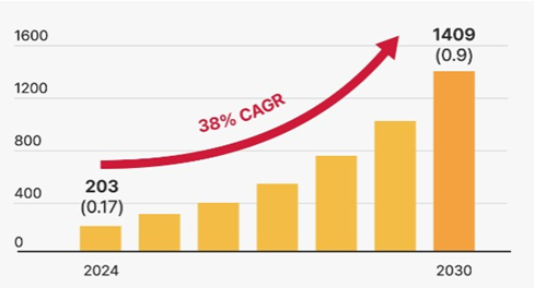 *Số liệu năm 2030 là dự báo *CAGR = Tốc độ tăng trưởng kép hàng năm (Nguồn: Ark Investment) |