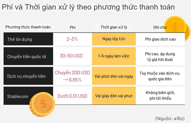 Ngược lại, các giao dịch bằng stablecoin chỉ tốn một phần nhỏ so với các loại phí truyền thống.