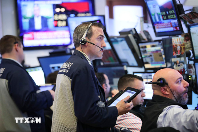 Giao dịch viên tại sàn chứng khoán New York, Mỹ. (Ảnh: THX/TTXVN)