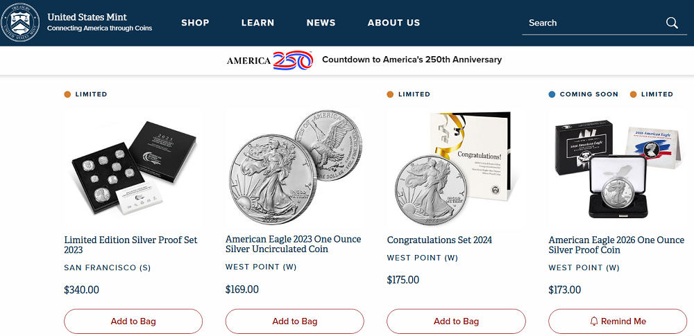 Tín hiệu từ US Mint: Nhớ lại ngày 14/01/2026, Cục Đúc tiền Mỹ (US Mint) – cơ quan độc quyền sản xuất tiền kim loại của nền kinh tế lớn nhất thế giới – đã tạm dừng bán các sản phẩm tiền xu sưu tầm được săn đón như American Silver Eagle vì “giá đầu vào tăng quá nhanh”. Hiện nay, Cục Đúc tiền đã mở cửa bán hàng trở lại, nhưng mức giá niêm yết trông… lạ lắm.