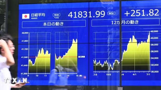 Bảng chỉ số chứng khoán tại Tokyo (Nhật Bản). (Ảnh: Kyodo/TTXVN)