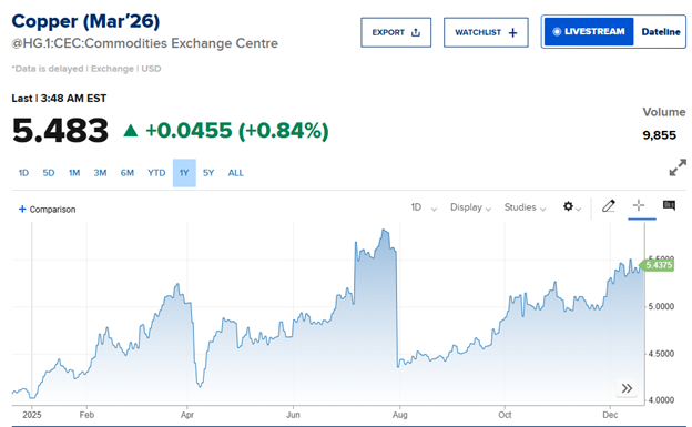 Giá đồng – kim loại không thể thiếu trong xe điện, smartphone và lưới điện – đã lập kỷ lục mới và tăng hơn 34% từ đầu năm.