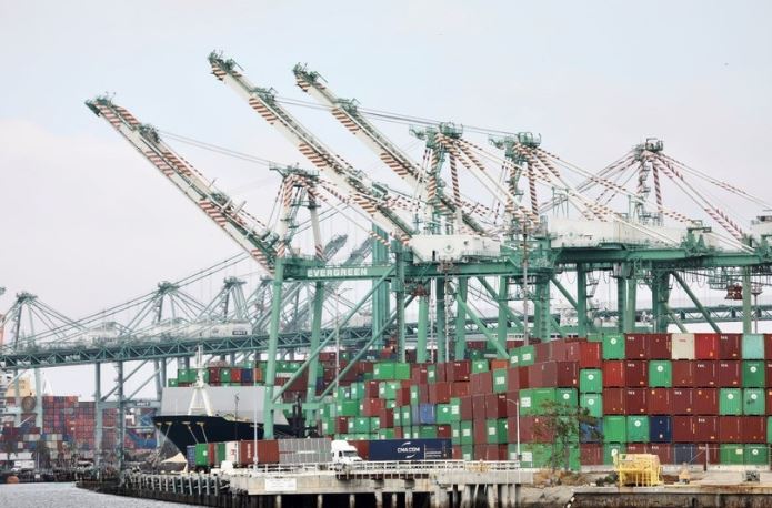 Quang cảnh cảng hàng hóa tại Los Angeles, California, Mỹ. (Ảnh: THX/TTXVN)