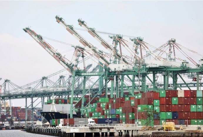 Quang cảnh cảng hàng hóa tại Los Angeles, California, Mỹ. (Ảnh: THX/TTXVN)
